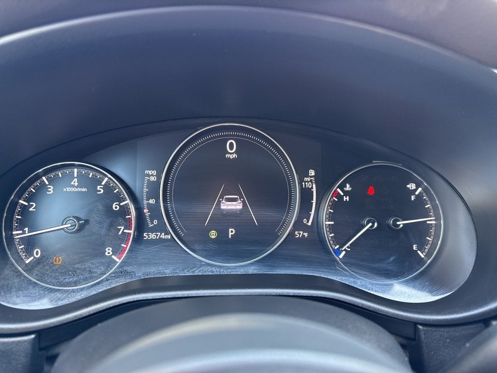 CarBravo with the 12 month 12,000 mile warranty Certified, 12 Speakers, 4-Wheel Disc Brakes, 4.095 Axle Ratio, ABS brakes, Air Conditioning, Alloy wheels, AM/FM radio: SiriusXM, AppLink/Apple CarPlay and Android Auto, Auto High-beam Headlights, Automatic temperature control, Brake assist, Bumpers: body-color, Compass, Delay-off headlights, Driver door bin, Driver vanity mirror, Dual front impact airbags, Dual front side impact airbags, Electronic Stability Control, Emergency communication system: Mazda Connected Services (3-year complimentary trial included), Exterior Parking Camera Rear, Front anti-roll bar, Front Bucket Seats, Front Center Armrest, Front dual zone A/C, Front reading lights, Front wheel independent suspension, Fully automatic headlights, Heads-Up Display, Heated door mirrors, Heated Front Bucket Seats, Heated front seats, Illuminated entry, Knee airbag, Leather Seat Trim, Leather Shift Knob, Leather steering wheel, Low tire pressure warning, MAZDA CONNECT Infotainment System, Memory seat, Navigation system: MAZDA CONNECT, Occupant sensing airbag, Outside temperature display, Overhead airbag, Overhead console, Panic alarm, Passenger door bin, Passenger vanity mirror, Power door mirrors, Power driver seat, Power Liftgate, Power moonroof, Power steering, Power windows, Radio data system, Radio: AM/FM/HD Audio System w/Mazda Navigation, Rain sensing wipers, Rear seat center armrest, Rear side impact airbag, Rear window defroster, Rear window wiper, Remote keyless entry, Speed control, Speed-sensing steering, Split folding rear seat, Spoiler, Steering wheel mounted audio controls, Tachometer, Telescoping steering wheel, Tilt steering wheel, Traction control, Trip computer, Turn signal indicator mirrors, Variably intermittent wipers, Wheels: 18 x 7J Aluminum Alloy.